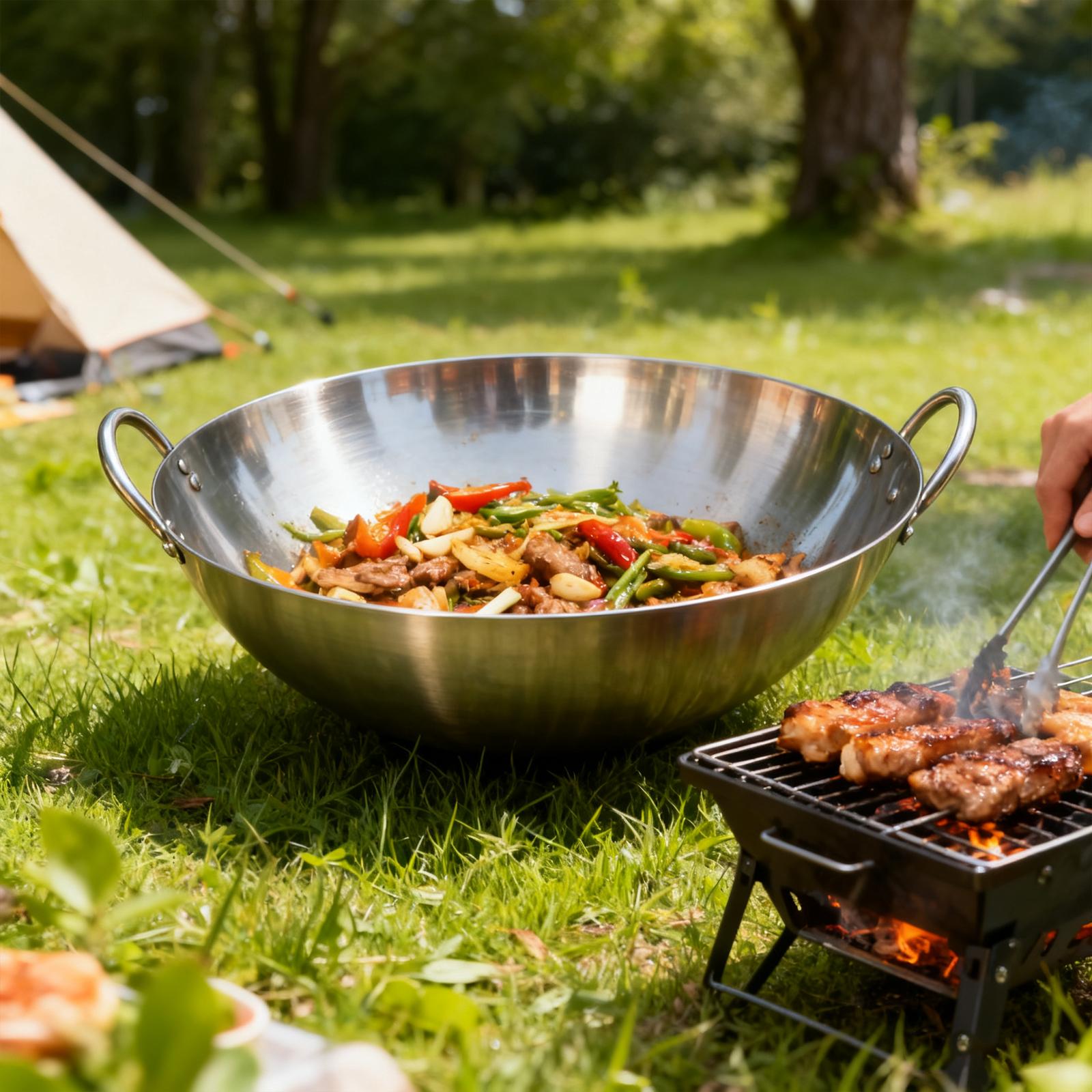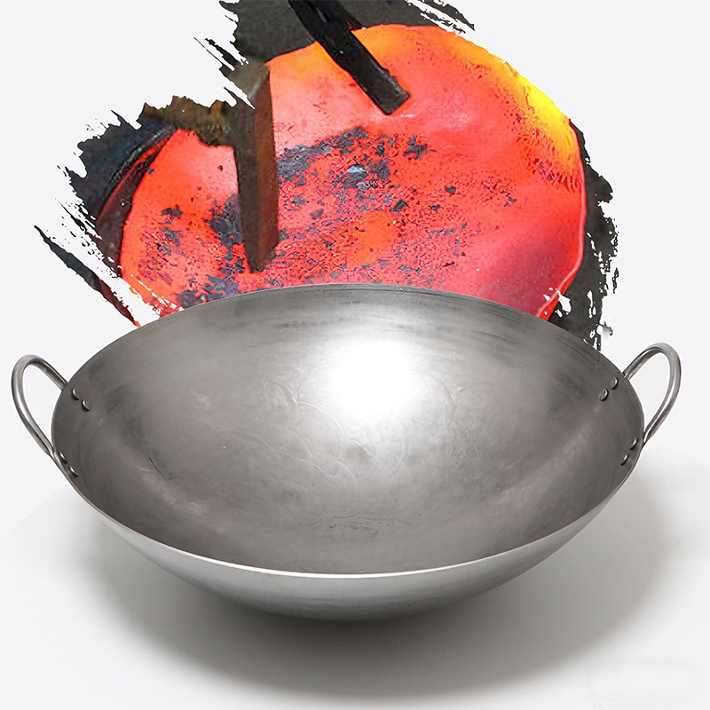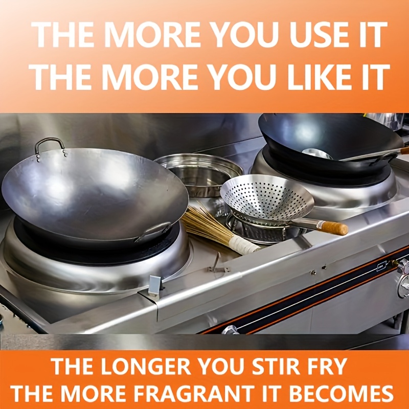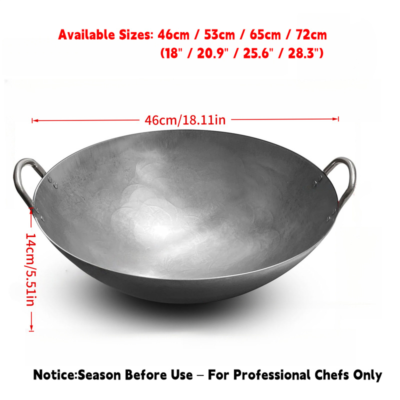 18-31.5 Inch Heavy Hand Hammered Iron Wok(Round Bottom) Kitchen Heavy Duty Wok Frying Pot Old-fashioned Double-handled Wok, Uncoated Non-stick Panfor Gas Stove Large Capacity Pan Convenient Kitchen Utensil for Home Cooking